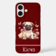An Fashionista Pug Puppy On A Red iPhone 16 Case You Can Personalise With Name .