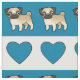 Pugs and Hearts - Blue Fabric