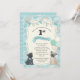 Pug puppy dog themed birthday party invitation with pastel aqua blue colour theme and room for 2 photos on the back.