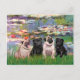 Pugs (Four) - Lilies2 Postcard
