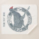 An illustration of a pukeko or swamp hen. This bird is drawn in the style of a wood or lino cut print. Pukekos are birds, which are native to New Zealand/ Aoteatoa. This pukeko is blue, with a red beak and white tail feathers.