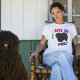 Kiwis wear all black as the t shirt is with Green lettering to match the environment and yellow for joy and purple thistle to match my hair.