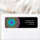 Colourful kaleidoscope with a bright teal colour in the centre. Yellow waves flowing out over orange and aqua colours ending up in red and purple.