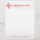 Customisable professional business letterhead template for cardiology clinic, nurses and doctors prescription or health centres with medical theme featuring a glowing red electrocardiogram heartbeat pulse signal on a heart monitor soft grid display.