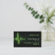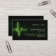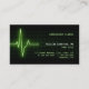 Customisable professional business card template with medical theme featuring a glowing green heartbeat / pulse monitor signal of the electrocardiogram.