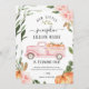 Gorgeous greenery and floral pumpkin invitation with a pink truck filled with pumpkins.