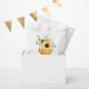 These custom bridal shower favour bags feature a fall-themed watercolor design with a pumpkin, sunflowers, eucalyptus, and cotton accents. The warm, rustic style is perfect for autumn baby showers and works well for other seasonal events like fall birthdays, baby showers, or Thanksgiving gatherings. Personalise the bags with the bride's name, event date, or a short message to make them your own. They're great for holding small treats, candles, or other party favours. A simple way to add a thoughtful and seasonal touch to your celebration.