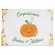 This adorable pumpkin baby shower design features a cute cartoon baby pumpkin! Perfect for a fall loving new Mum!