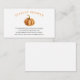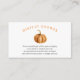 Baby Shower request card for unwrapped gifts for a display shower. Featuring an orange pumpkin with request poem "Your beautiful gift will be put on display so no need to wrap in any way. an unwrapped present is just as sweet, and will save more time to mingle and eat."
