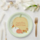 Throw a pumpkin theme baby shower this fall with this cute design! Great for autumn celebrations with the sage background, soft coloured pumpkin design and script fonts.