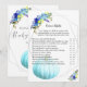 Sweet baby blue and yellow florals and silver geometric frames to celebrate at a baby shower. A large aqua blue pumpkin at lower left. Edit text areas to create a unique and special baby shower party game of Over or Under.