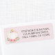 These pink baby shower return address labels are decorated with a watercolor pumpkin and florals with the words "A little pumpkin is on her way!"