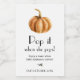 Pop it when she pops! Pumpkin themed tag, perfect for a baby shower to have guests celebrate when baby arrives! Customise with name, event date or custom text.
