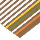 Pumpkin berries, leaves and stripes fall colours Thanksgiving table runner. It features a yellow and orange pumpkin with leaves and red berries. There is a brown and white striped pattern around it in brown accented with orange, yellow and green stripes.