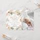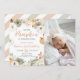 Celebrate your little one’s first birthday with this neutral fall pumpkin photo invitation! This charming design combines watercolor pumpkins, soft cream florals, and warm autumn leaves with space to feature your baby’s adorable photo. Perfect for a cosy fall or Thanksgiving birthday party. Ideal for baby girls, boys, or gender-neutral celebrations.