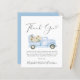 Cute budget-friendly thank you card for your baby boy shower featuring "Thank You" in a stylish script with a heart swash and a watercolor of a blue vintage truck loaded with pumpkins. Personalise your thank you message in simple modern typography and add your names in a signature-like script.