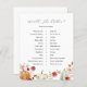 Bridal shower game card featuring a watercolor cascade of pumpkins and burgundy flowers. A fun way to interact with shower guests.