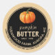 Orange pumpkin illustration on black with kraft border; date, net weight and ingredients. Great for jelly jars.