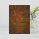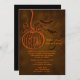A charming pumpkin cage with two bats flying away from it signifying both a wedding and a Halloween event. The pumpkin has swirling tendrils and bars. The invitation has orange and black shades to set the spooky Halloween mood.