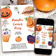 Halloween Pumpkin Carving party invitation. Design features revolting food, treats and candy including maggot burger, eyeball cupcake, pumpkins, spooky cookies and halloween sweets. If you would like any matching items, please browse my halloween party food collection or message me to create the templates you need.