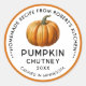 Editable homemade pumpkin chutney canning label featuring a vintage style pumpkin illustration. Make your own canning labels for your favourite homemade recipes. Perfect for preserves, homemade gifts or as kitchen pantry organiser.