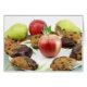 Fall treats dipped in chocolate surrounded by fruit. Pumpkin chocolate chip cookies Fall half dipped in chocolate surrounded by apples, pears, leaves, pine cone. This makes a lovely autumn or fall party platter great for around Halloween or Thanksgiving. pumpkin_cookies_fruit_leaves_OPJ300