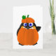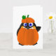 A cute cartoon penguin dressed up as a fat orange autumn pumpkin for Halloween!