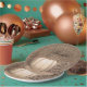 Pumpkin white gold elegant metallic background texture, fall country paper plates. Personalise Thankful typography. Beautiful autumn pine cone design. Image copyright Marg Seregelyi Photography.