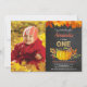 Fall Pumpkin First Birthday Invitation with custom photo. Fall Birthday Party Invitation. Gold Gliiter. Chalkboard Background. Boy or Girl Birthday Party. Pink, Orange and Gold. 1st First Bday Invite. For further customisation, please click the "Customise it" button and use our design tool to modify this template.