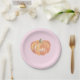 Pumpkin Fall First Birthday Party Paper Plates. Pink Background.