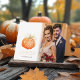 Show your appreciation to your guests or wedding attendants with this cute pumpkin watercolor art with your own special photo wedding thank you card. Perfect to show your appreciation for those who attended your wedding and to thanks guests for kind gifts. Simple soft orange, white and brown unique fall design. Customize this card with your favorite wedding photo on the front and a special personalized message inside. Unique hand painted pumpkin art and design by Sarah Trett exclusively for www.mylittleedenweddings.com only on Zazzle.