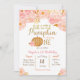 With pink and peach, it is perfect for a fall girl first birthday invitation.