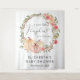 An elegant and pretty photo backdrop tapestry for your baby girl shower featuring "a sweet little pumpkin is on her way" written in modern soft grey typography and a script with a heart swash, and a watercolor wreath of pastel pink and coral pumpkins and florals. Add the mother-to-be's name and shower date.