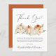 Elegant budget-friendly thank you card for your baby shower featuring "Thank You" in a stylish script with a heart swash and watercolors of orange and cream pumpkins and floral bouquets. Personalise your thank you message in simple modern typography and add your names in a signature-like script.