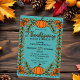 Pumpkin Floral Border on Turquoise Thanksgiving Invitation