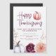 Floral and pumpkin fall thanksgiving party invitation in purple and peach. With beautiful watercolor floral, foliage and pumpkin design. Ideal fall/autumn design.