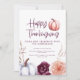 Floral and pumpkin fall thanksgiving party invitation in purple and peach. With beautiful watercolor floral, foliage and pumpkin design. Ideal fall/autumn design.