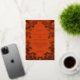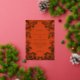 An elegant fall wedding invitation with a frame of hand drawn pumpkins and leaves in real gold foil on a burnt orange background. Personalise with your details in gold.