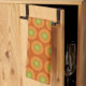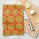 12 poiint star gems in repeat pattern, looks like pumpkins from a top view with green leaves, great for Halloween, autumn, fall, or harvest kitchen dish towel, tea towel, or Thanksgiving. Art by Kristie Hubler done in Adobe Illustrator.