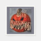 This graphic drawing, has been digitally-edited, to enhance, this vibrant, orange, and black, pumpkin, with menacing, grin-leaning towards, the right, against a pale-grey, background, with Happy Halloween, Emblazoned, across the front, in macabre, pale-coloured, lettering.