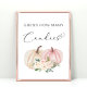 Cute game sign for your baby girl shower with "Guess How Many Candies" written simple grey typography and a stylish grey script with heart swash and watercolors of pastel pink, coral and cream pumpkins and florals. Place a jar filled with candies underneath and ask your guests to guess how many are in the jar. The winner will be the guest who gets closest without going over. Matching guess cards are available in our Pink Pumpkin Floral Watercolor Baby Girl Shower Collection.