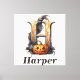 Create your own, personalised Watercolor Pumpkin Halloween Name Letter "H" Floral Monogram, featuring decorative watercolor floral and gold illustrations. You can easily customise it with your name or create a unique gift for your loved ones.