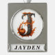 Pumpkin Halloween Name Letter J Floral Monogram Silver Plated Banner Ornament