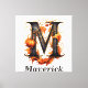 Create your own, personalised Watercolor Pumpkin Halloween Name Letter "M" Floral Monogram, featuring decorative watercolor floral and gold illustrations. You can easily customise it with your name or create a unique gift for your loved ones.