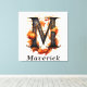 Pumpkin Halloween Name Letter M Floral Monogram Canvas Print