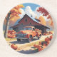 Autumn Pumpkin Harvest with Pickup Truck, fall leaves and pumpkins everywhere. Coaster with Fall Leaves, barn and truck.