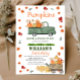 Pumpkin, Hay, Leaves, Fall Birthday Green Truck Invitation