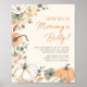The unique pumpkins and floral background are gorgeous for rustic pumpkin and boho fall baby showers.