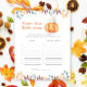 "A little pumpkin is on the way. Celebrate with this baby cartoon pumpkin themed for baby shower party! Watercolor cute cartoon kawaii pumpkin with autumn hat (cap) and fall leaves. On the reverse side of the card are autumn leaves.