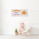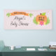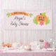This cute fall baby shower banner features a bright coloured graphic of a pumpkin on a light purple background. The graphic is accented with a pink flower and the text "It's A Girl!